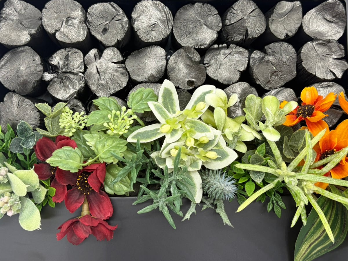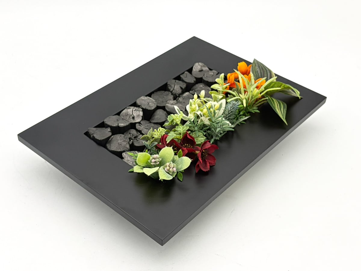 ・こちらの商品は上段に紀州備長炭、下段に造花が配置されます。