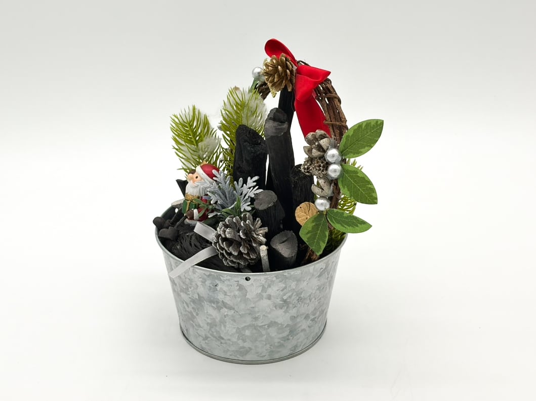 ・ベースは缶で紀州備長炭と造花で出来ています。