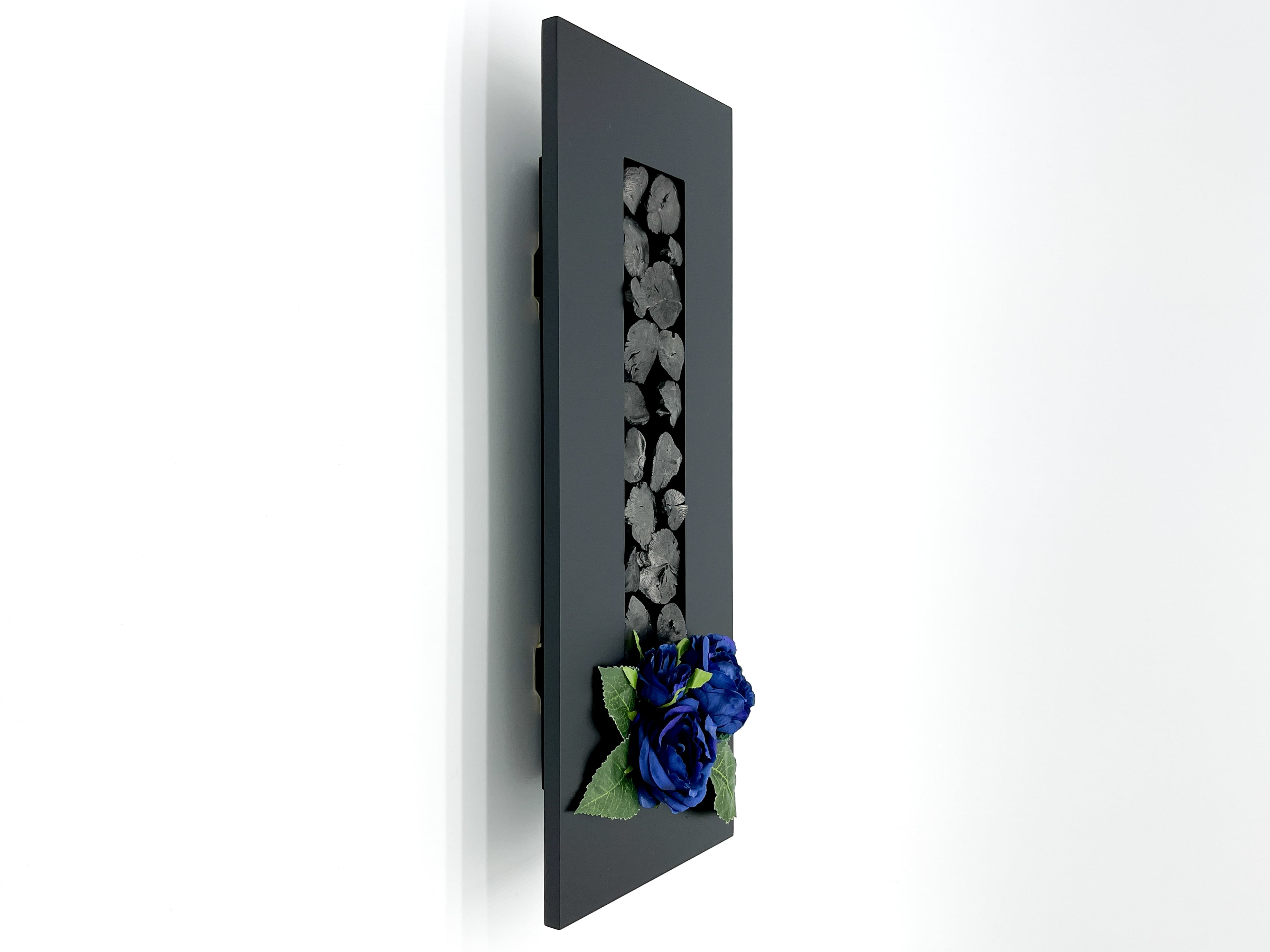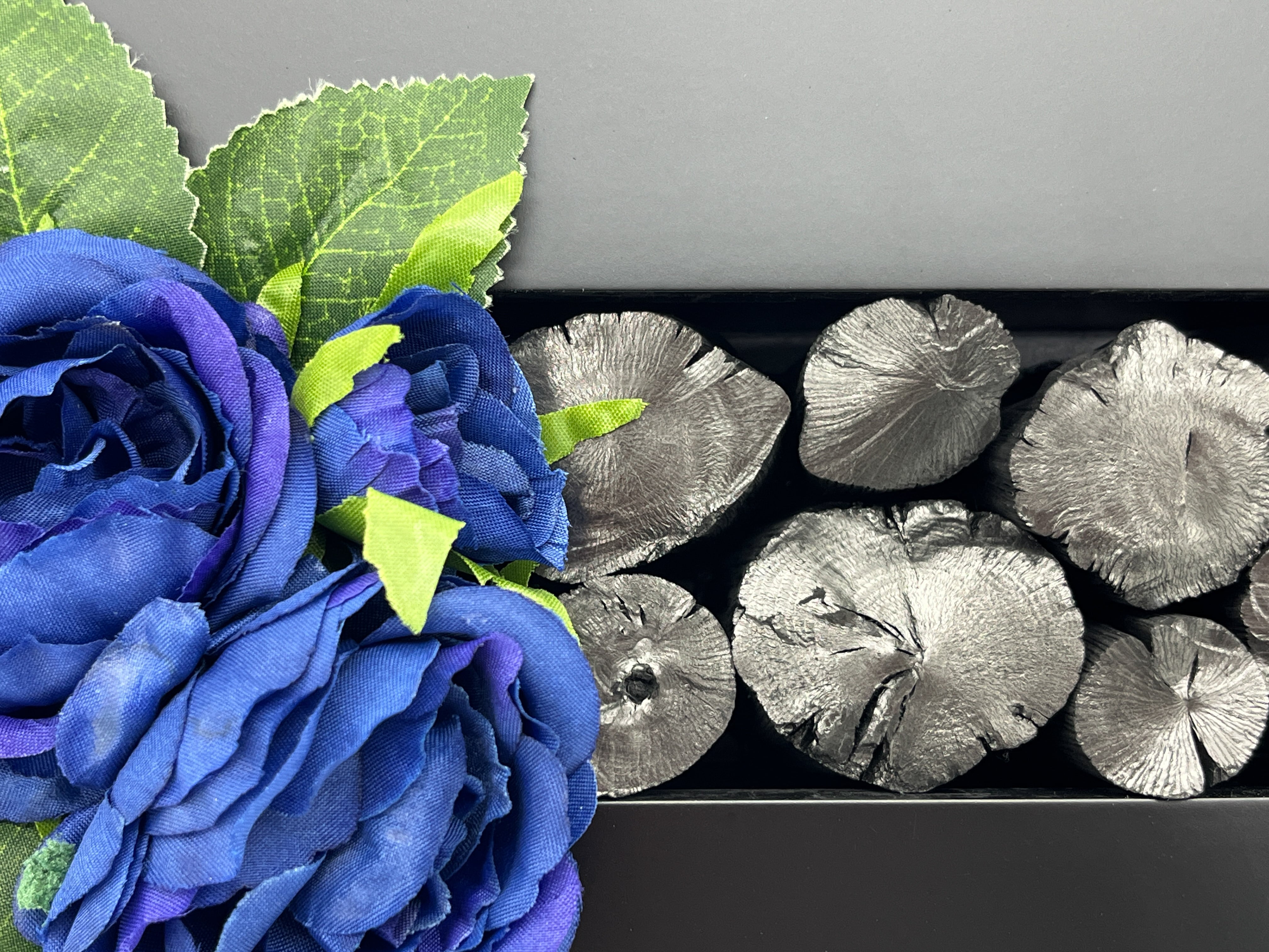 紀州備長炭 インテリア フレーム 『青薔薇』40cm×15.5cm 長方形 置物 オブジェ 消臭 調湿 (黒)