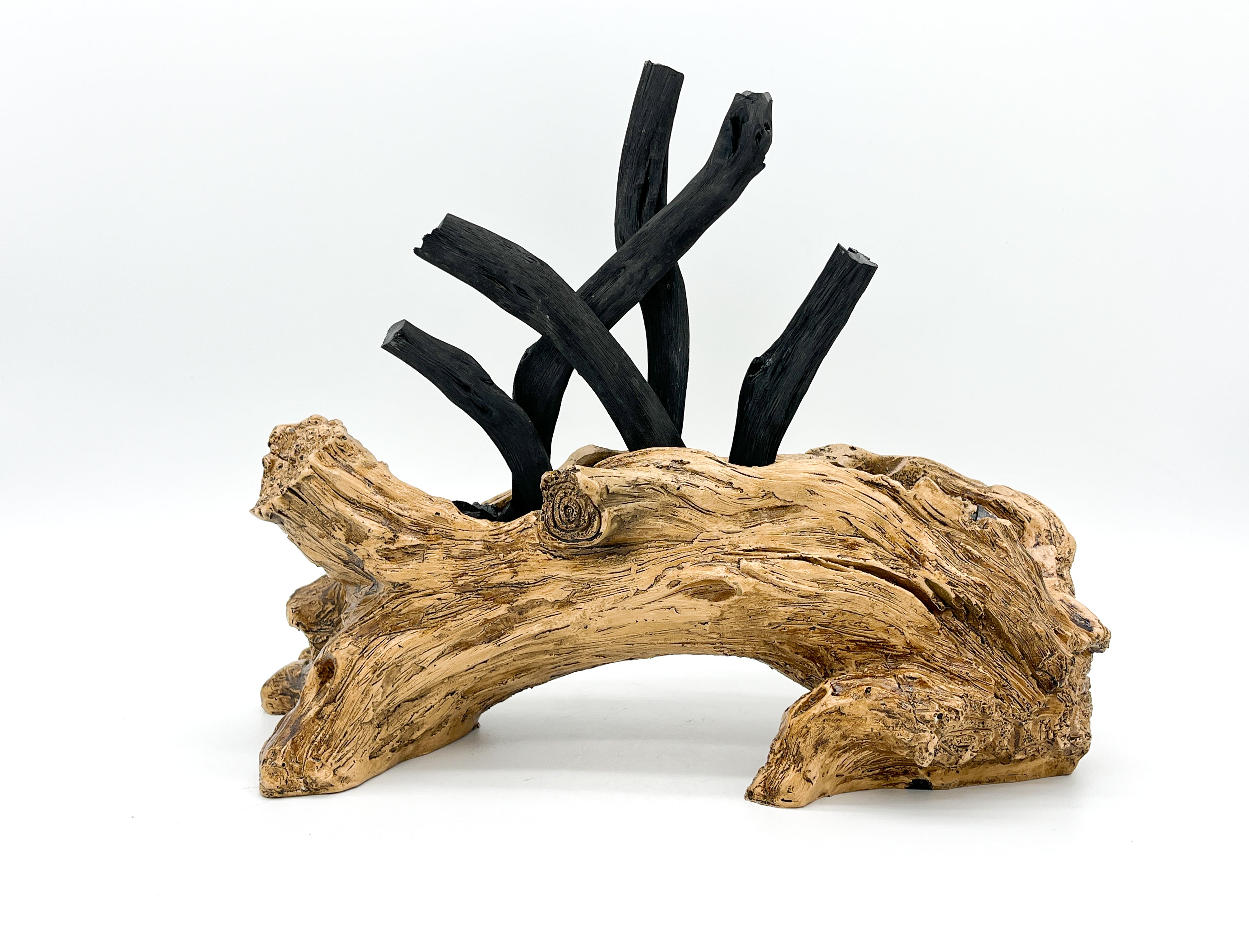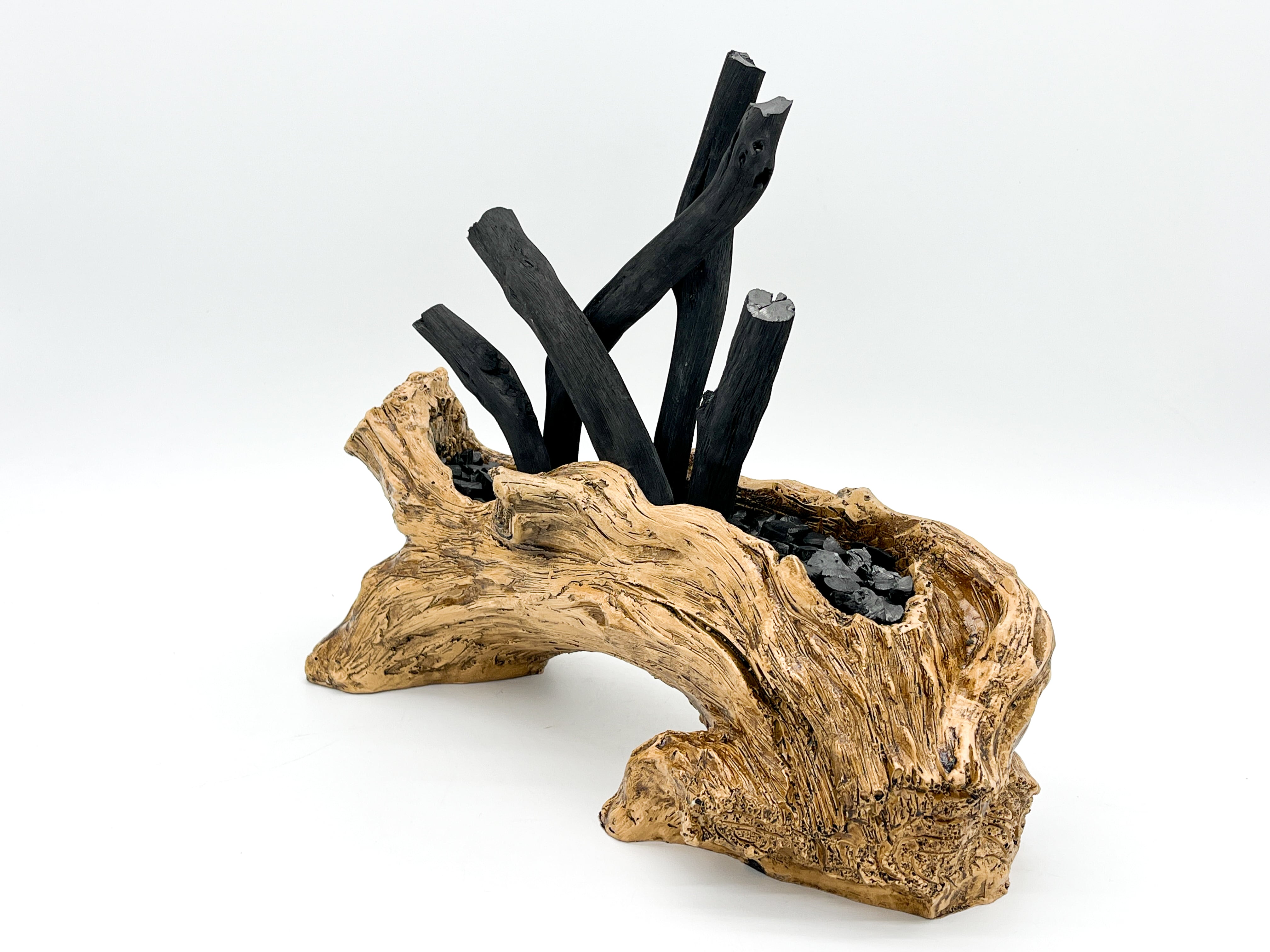 炭彩景の土台には、流木のような形をした樹脂製の素材を使用しています。そのため、経年劣化や虫食いによるダメージを気にすることなくお部屋のインテリアとして長くご使用いただけます。