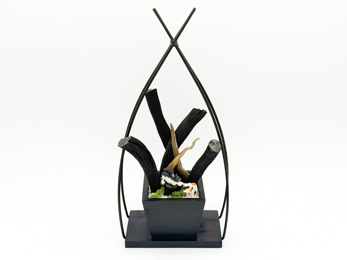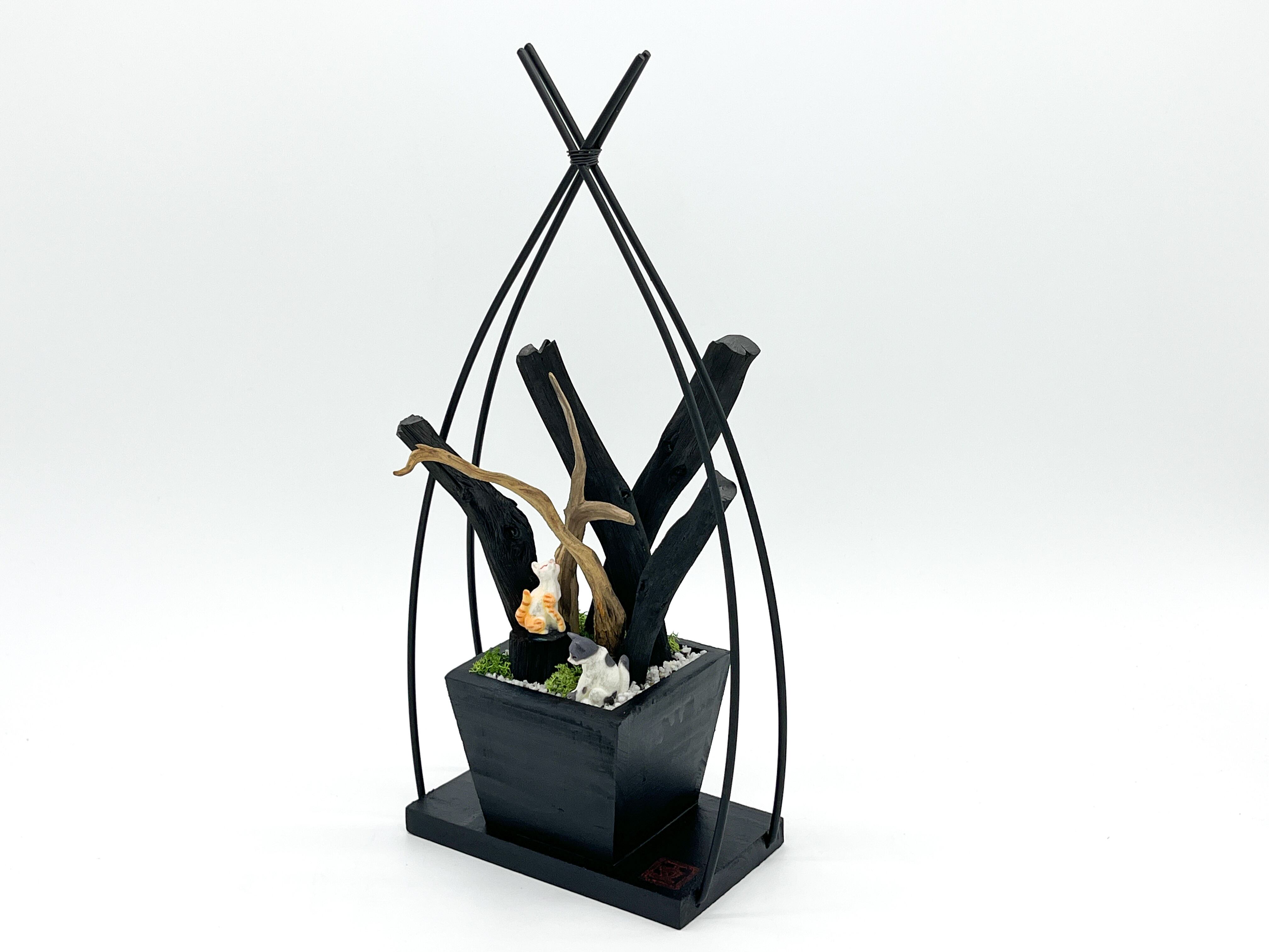 ・紀州備長炭と流木で出来ており、2匹の猫が佇んでいます。